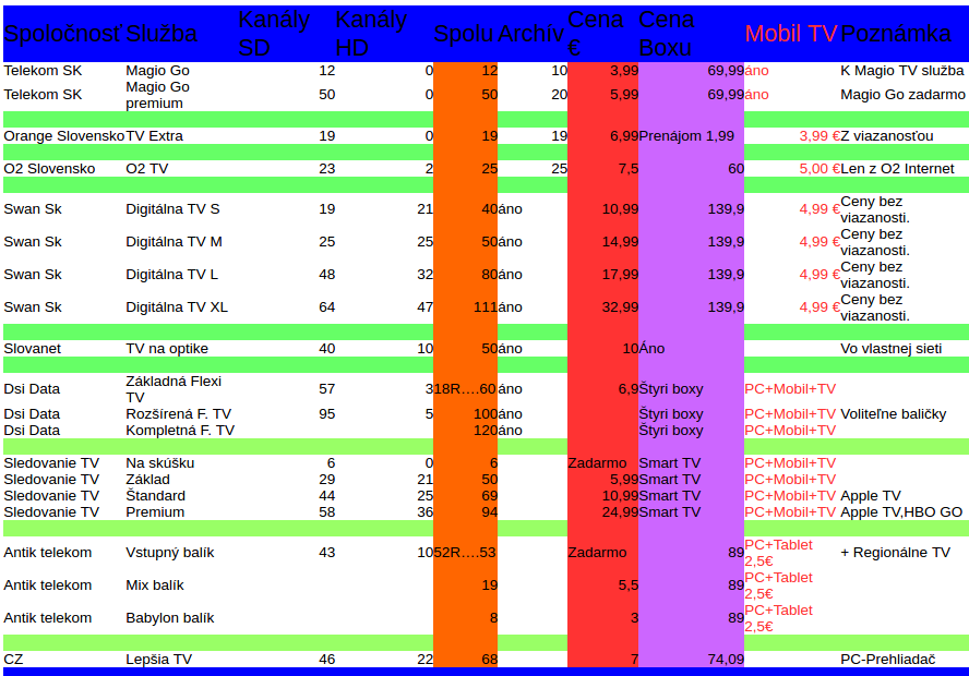 Dole v tabuľke je väčšina poskytovateľov IPTV služieb na Slovensku.